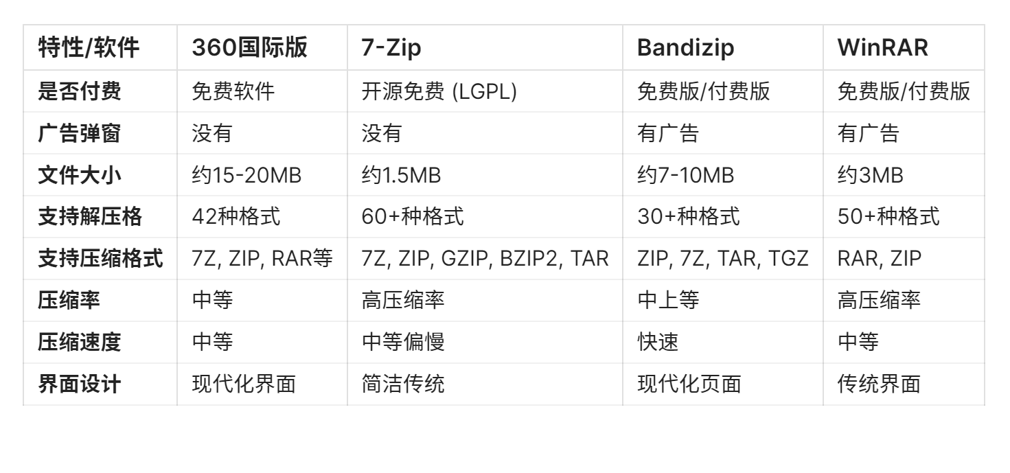 压缩软件之间的差异对普通用户来说感知不强,各有各的小特点