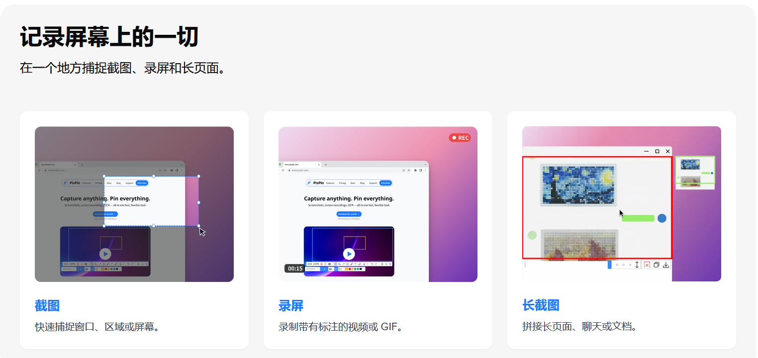 • 代表功能:悬浮图和长截图、录制动图、OCT文字